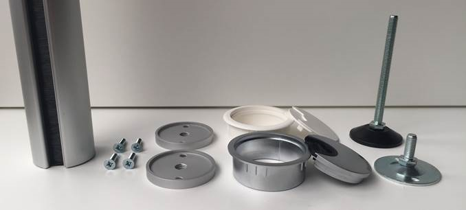 Die Kabelsäule ist eine aluminium Säule von 3.000mm lang und Durchmesser von Ø50mm mit einer Bürstendichtung um Kabel und Schnüre auf eine ordentliche Art und Weise von der Decke bis zum Boden oder Arbeitsplatz zu führen.